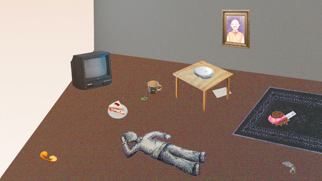Mr. Momo is Dead is a web-based, point-and-click narrative set inside the bleak and uninviting apartment of a person named Momo. On the page, visitors encounter his body among scattered traces of life that are often off-putting: an old orange peel, uneaten birthday cake, mysterious letter, old television, and more. With each object revealing a new layer—a drawing, a sound, or a short video, Mr. Momo is Dead invites viewers to reflect on the themes of intimacy, participation, and isolation.